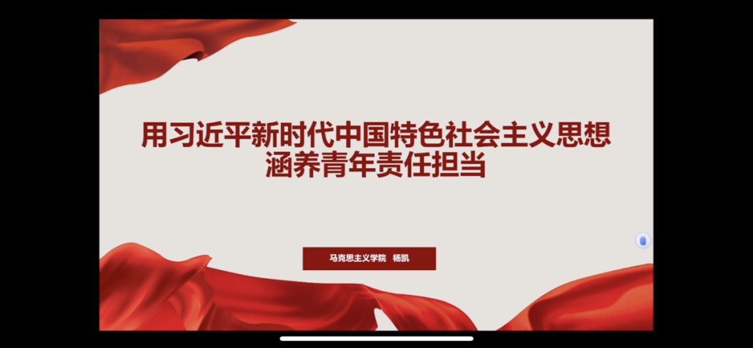 会上,杨凯老师讲到“中国青年始终是实现中华民族伟大复兴的先锋力量”,这句话深深印刻在我们脑海中。新时代青年要坚定理想信念,要认识到自己肩负的历史使命和社会责任,增强使命感和责任感,以实际行动践行“爱国、敬业、诚信、友善”的核心价值观,努力为人民服务,为实现中华民族伟大复兴的中国梦贡献青春力量。青年要积极适应时代发展的要求,勇于探索、敢于创新,以创新的精神和行动推动中国特色社会主义事业的发展。要勇于担当责任,不畏困难和挑战,敢于承担风险和责任,在实践中锤炼自己的担当精神,努力成为中国特色社会主义事业的优秀接班人。