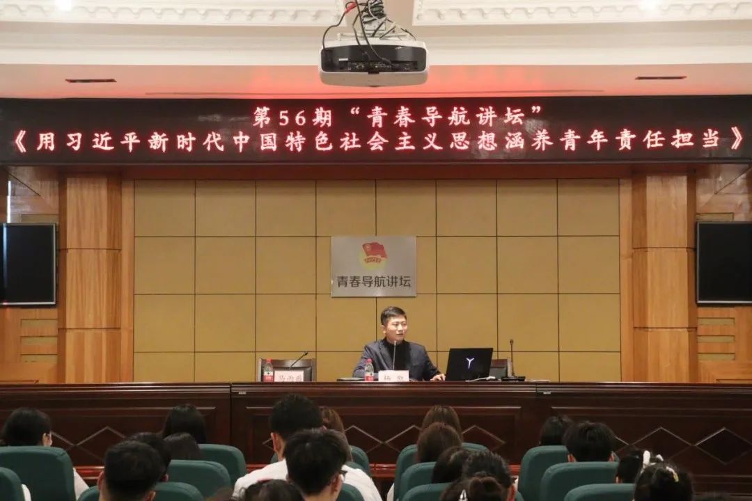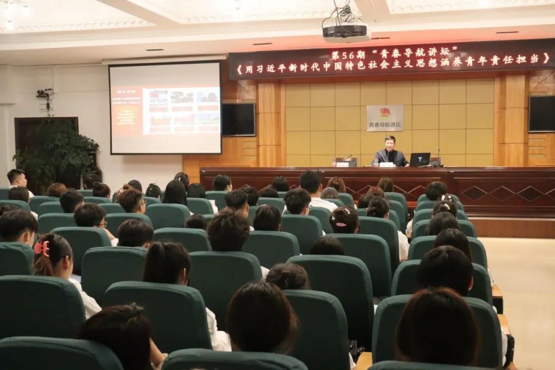 党的二十大报告指出:“全党要把青年工作作为战略性工作来抓,用党的科学理论武装青年,用党的初心使命感召青年,做青年朋友的知心人、青年工作的热心人、青年群众的引路人。”2023年11月2日晚18:00,永利官网在清华楼九楼报告厅召开“第56期青春导航讲坛”永利官网马克思主义学院杨凯老师为同学们做题为《用习近平新时代中国特色社会主义思想涵养青年责任担当》的专题讲座,讲座由校团委干事马雨薇老师主持。本期讲座采取线上线下相结合的方式,线下2022级、2023级学生代表共计240余人参加会议,线上观看人数7400余人,实现永利官网大一、大二在校学生全覆盖学习。