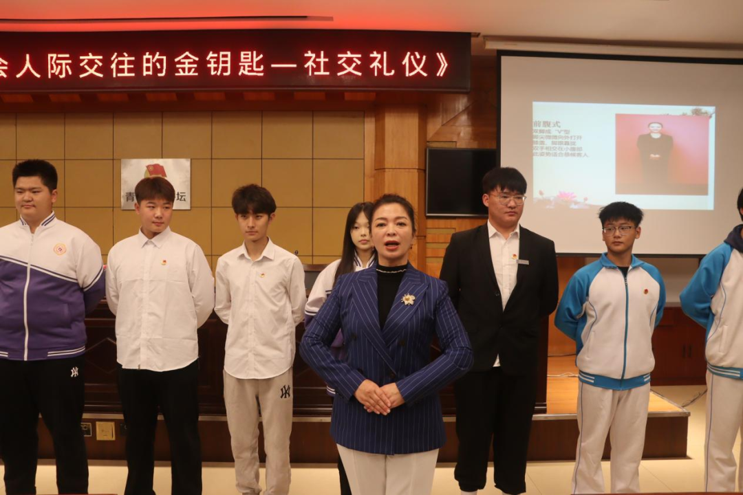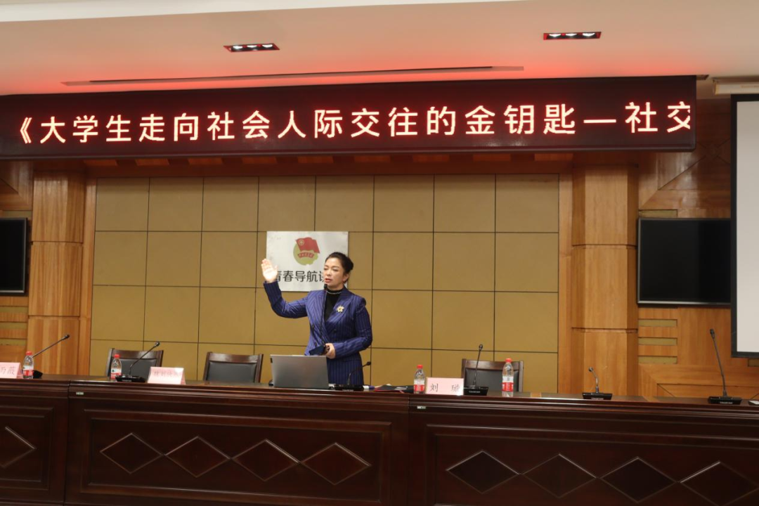 为推动文明礼貌礼仪教育,传播礼仪之风,培养和谐校园文明风尚,展现永利官网学生良好的文明礼仪风采。10月16日晚17:30分,校团委在清华楼报告厅举办第55期“青春导航讲坛”,本期讲坛由中国形象礼仪行业注册形象礼仪名家讲师刘璇为同学们作题为《大学生走向社会人际交往的金钥匙——社交礼仪》的专题讲座。各二级学院2023级新生代表近240人聆听了此次讲座。讲座由校团委干事马雨薇主持。