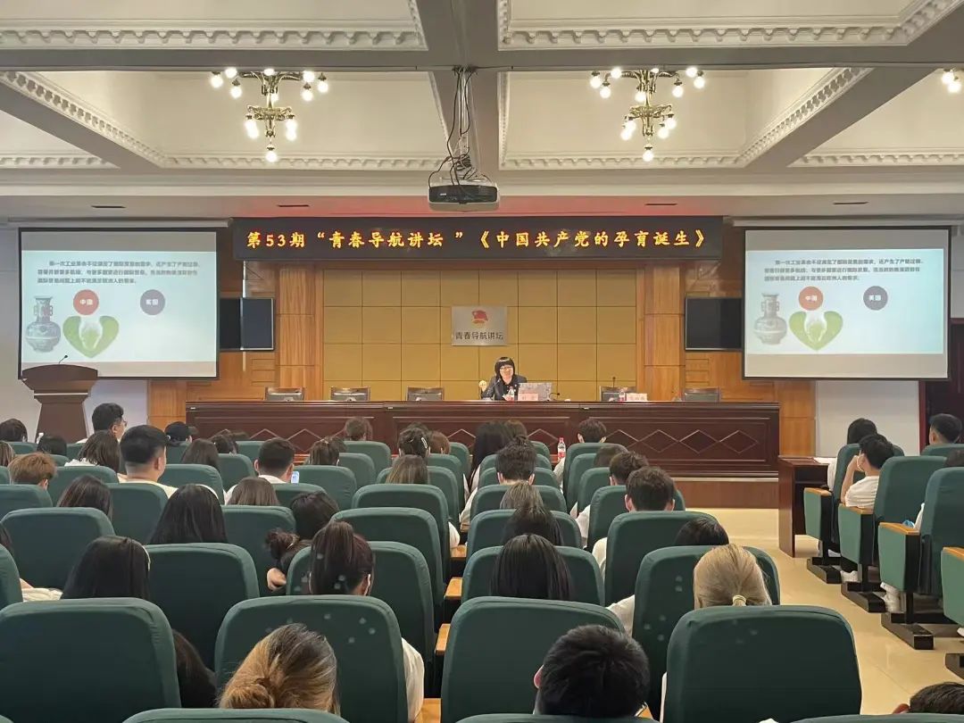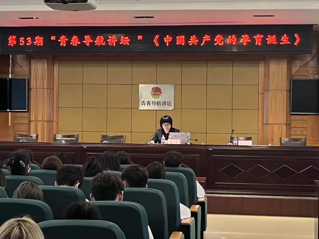 为深入学习宣传贯彻党的二十大精神,纪念五四运动104周年,5月4日下午,校团委在学校清华楼报告厅举办第53期“青春导航讲坛”,本期讲坛特邀学校办公室刘岩副教授为同学们作题为《中国共产党的孕育诞生》的专题讲座,讲座活动系校团委落实学校“学习贯彻习近平新时代中国特色社会主义思想主题教育”的具体实践,旨在通过举办“学思想”系列讲座,帮助永利官网青年学子不断提升理论素养,从党的百年历程中汲取智慧和力量。各二级学院学生代表近240人聆听了此次讲座。讲座活动由校团委干事马雨薇主持。