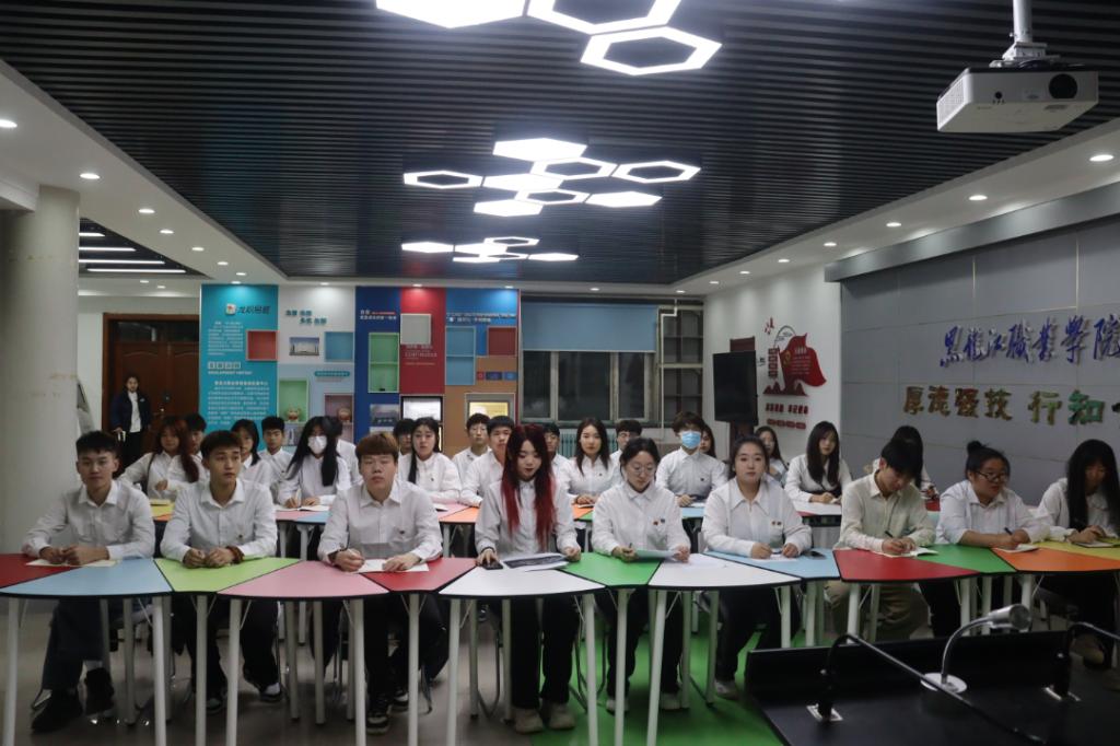 在主持人张成鑫的带领下,全体团员起立,进行入团宣誓,重温入团誓言、牢记使命。