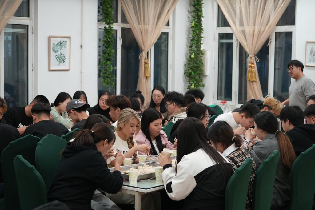 众人齐出手,争当“饺饺者”!择菜、调馅、擀面皮、包饺子,师生共同参与、相互配合、明确分工,用灵巧的双手,捏出了一个个“个性十足”的饺子。师生互教互学,相互切磋包饺子的技巧,现场气氛格外热闹。经过共同努力,“形状各异”的饺子摆满了餐桌,蘸点老陈醋,涮上辣椒油,一口咬下去,汤汁四溢,滋味鲜美,到处洋溢着“家”的味道与温馨。品尝美食之余,师生们围坐在一起,交流学习,分享生活,其乐融融。