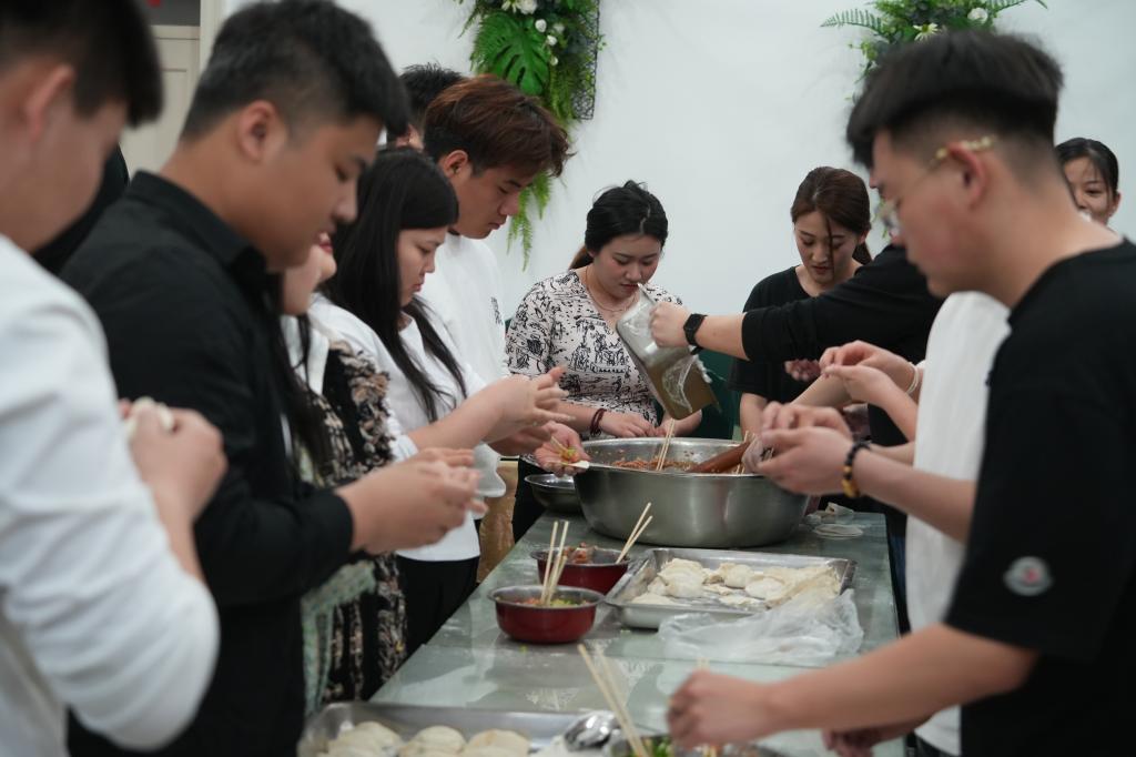 ▲师生共同包饺子