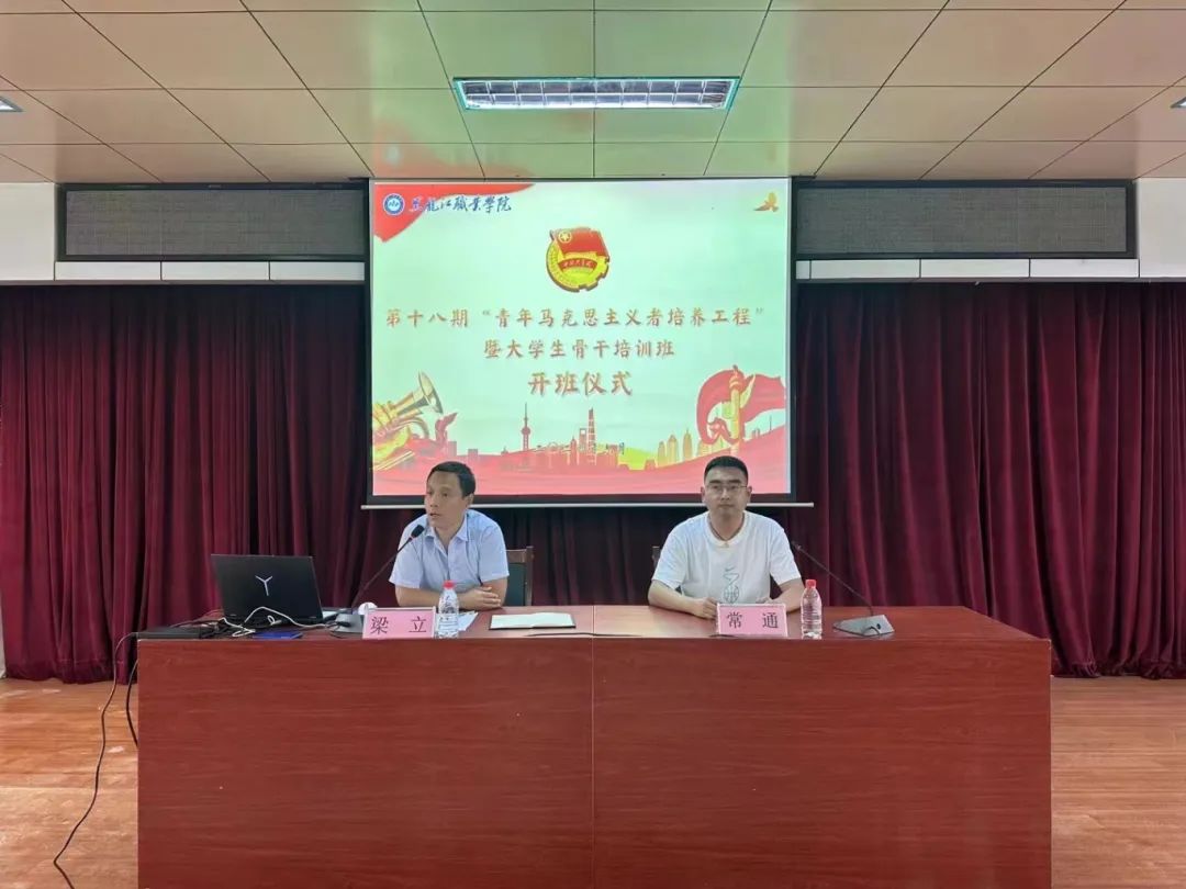 开班仪式中,校团委副书记梁立详细介绍了本次培训班活动方案,并以《做一名坚定的青年马克思主义者》为主题做了开班式第一讲。梁立紧紧围绕为什么要成为一名青年马克思主义者和如何做一名坚定的青年马克思主义者为主线,分别从树立远大理想、加强政治理论学习、注重工作方式方法等方面进行了详细讲解,指出学生组织工作人员要不断增强“四个意识”、坚定“四个自信”、坚决做到“两个维护”,坚定理想信念,做一名有理想、有担当的有志青年,为中华民族伟大复兴贡献青春力量。