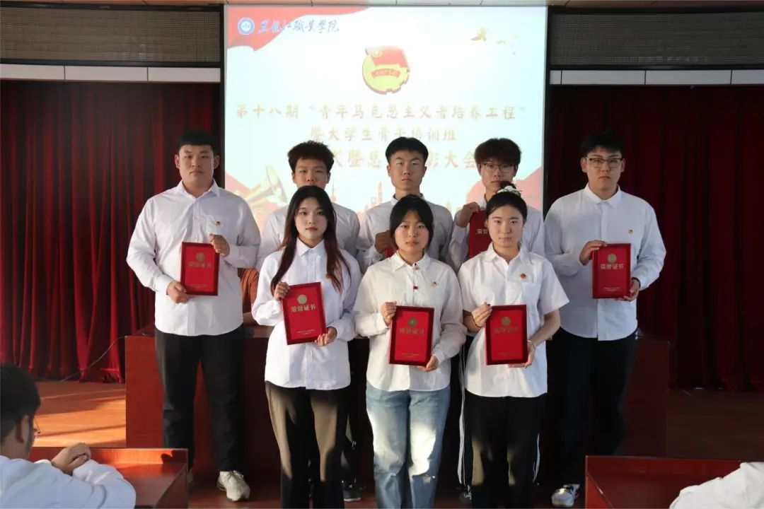 在结业式上“五四青年标兵”代表、“优秀团干部”代表、“青马班优秀学员”代表分别作了交流发言,团委老师为优秀学员颁发了荣誉证书。