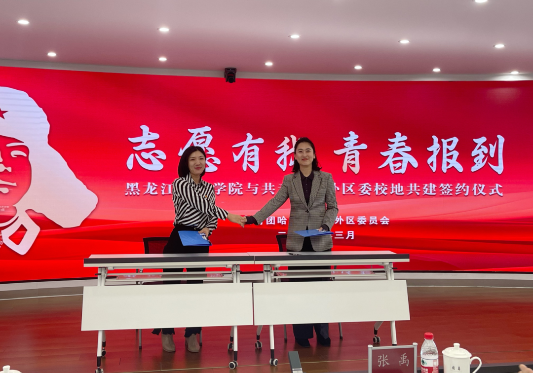 ▲校团委书记石倩与道外团区委书记郭阳现场签约