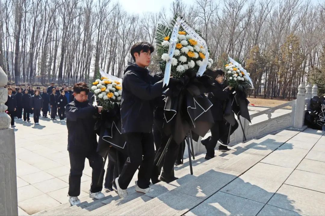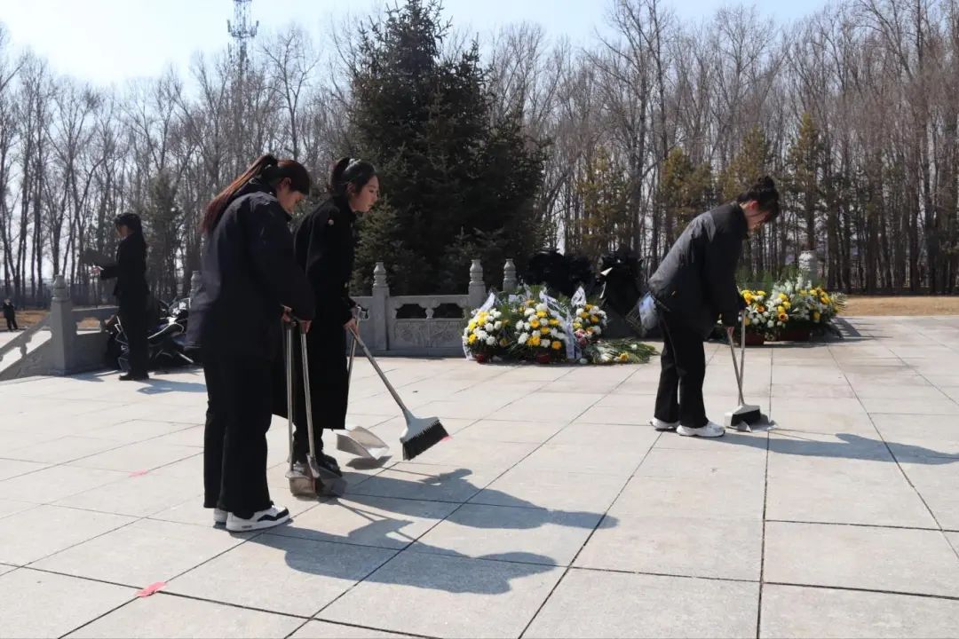 中午12时,由80余名学生代表组成的志愿者队伍,在第二校区团委老师的带领下前往双城区烈士陵园。怀着对革命先烈的崇高敬意,携带清扫工具的同学为烈士纪念碑清理灰尘,学生代表向烈士纪念碑敬献花篮并领读誓词,以表达对烈士沉痛的哀悼和深切的思念。