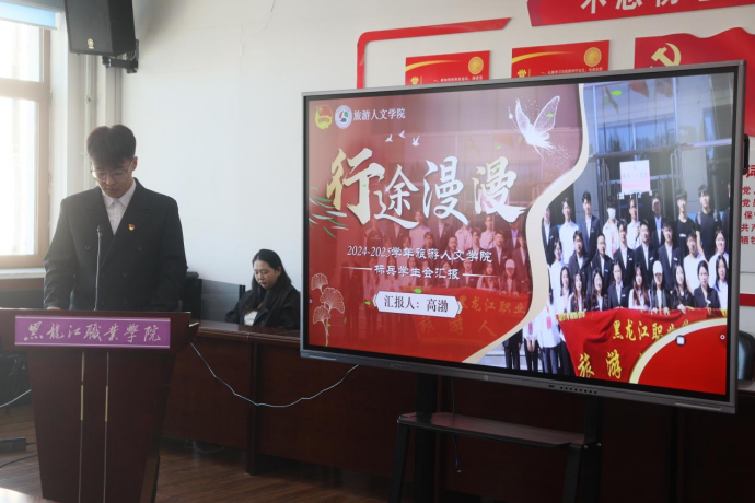▲旅游人文学院进行工作述职