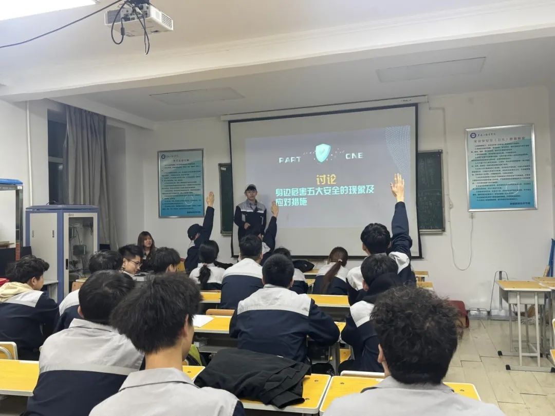 活动期间,各班团支书对总体国家安全观进行了详细的讲解。让同学们对国家安全的重要性和复杂性有了更为直观和深刻的认识。讲解结束后,各班级围绕讲解内容开展了主题研讨会。同学们积极发言,分享了各自对维护国家安全的感悟和体会,在交流中深化了对总体国家安全观的理解。为检验学习效果,激发学习积极性,活动特别设置了知识问答环节,题目涵盖国家安全法律法规、日常安全防范要点等。
