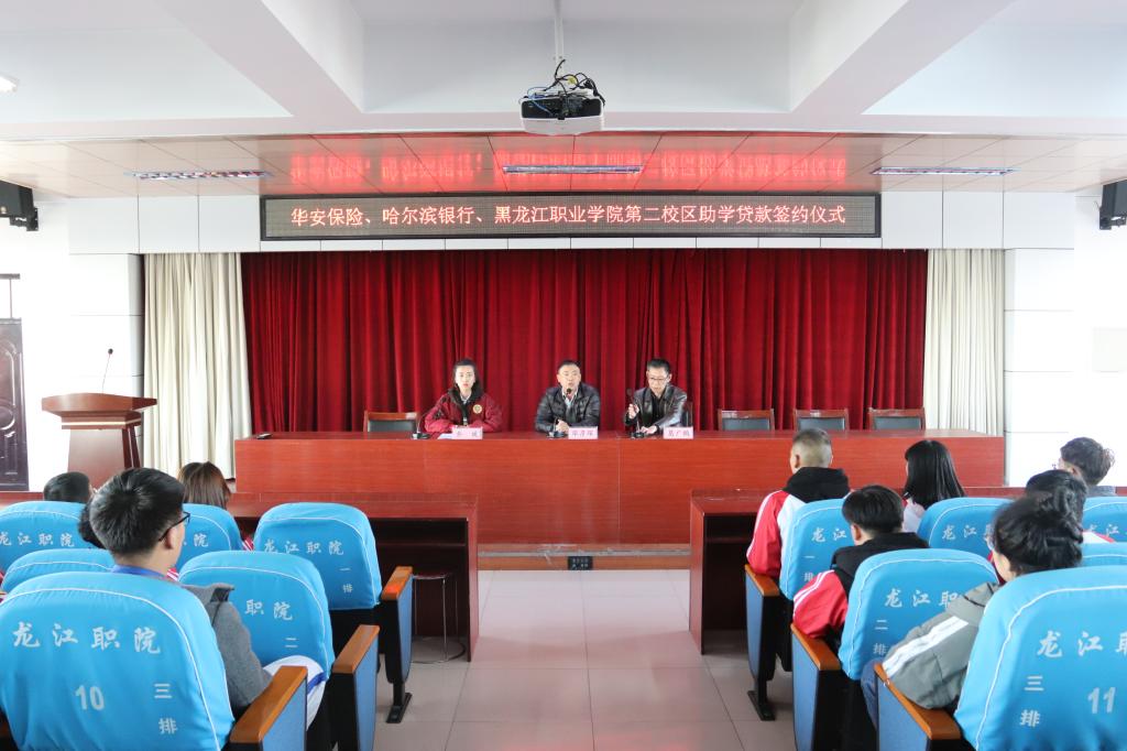 会上,毕彦琛向同学们介绍了国家助学贷款相关政策、还款方式、信贷影响及注意事项等,毕主任表示华安保险公司将协同哈尔滨银行一起做好助贷工作,为同学们提供最优质服务,让学生学费没有负担,学习没有后顾之忧;葛广鹏向华安保险对永利官网贷款工作的支持表示感谢,与同学们分享了国家助学贷款政策的深远意义和诚信还款对未来人生的影响,并对同学们提出了要时刻感念国家的好政策,努力学习,履行约定,交出一份“不负江山不负卿”的诚信答卷;学生代表曹瑞在会上发言并带领所有贷款同学进行了刻苦学习、诚信做人、认真履行还款业务、维护个人信用的承诺。