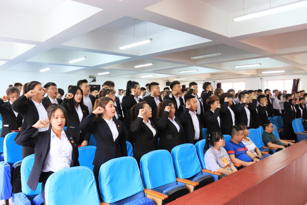 会议上,聘任文件的宣读、聘书的颁发、团旗的交接,预示着责任与使命再一次落在新一届学生干部的双肩;新老学生干部代表的精彩发言,诉说着自己的点滴经历、成长蜕变、对组织的留恋以及使命交接后的责任担当和面对新挑战时的激情与信心;整齐划一的入职承诺,代表着新一届学生干部的青春朝气与拼搏的斗志;学生干部管理条例的宣读,为学生干部时时树立榜样作用与规范自身行为再次明确航标。最后,学工部副部长赵彦生在总结发言中结合实际工作,赞扬了校级学生干部长期以来配合学校、配合老师,高质量完成了校园文化建设、学生教育管理、学生社团活动、公寓标准化建设等方面大量细致、繁杂的工作,并对本次竞聘中脱颖而出的2018级学生干部给予了高度肯定与衷心祝贺。同时,也从理论的高度和具体的做法向学生干部们提出五点希望和四点要求,尤其是学生干部要在公寓标准化建设、校园控烟和校园文明行为方面,如何发挥榜样力量,提出了具体化的建议与要求。