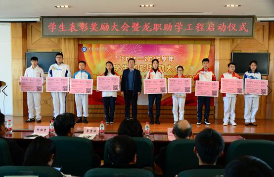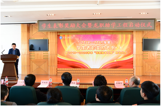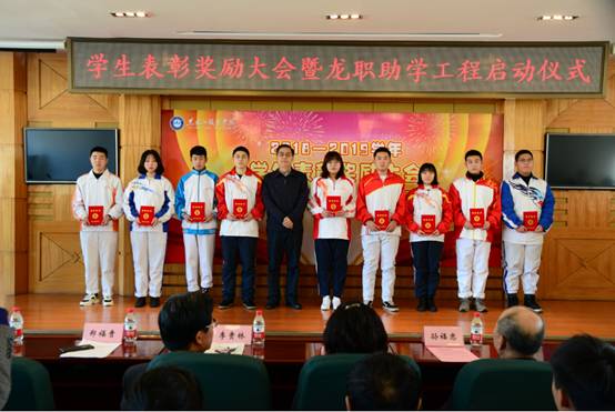 11月20日,学校2018—2019学年学生表彰奖励大会暨2019—2020学年龙职助学工程启动仪式在报告厅隆重举行。党委副书记周家郁、学校副校长李贵林、郑福贵、吴艳秋,党委委员、组织部长钟敏强、龙职副校长孙福忠等领导出席会议,周家郁主持会议。帮扶结对子师生代表、受助越冬棉衣学生代表、受助返程车票学生代表、表彰奖励学生代表等参加了会议。