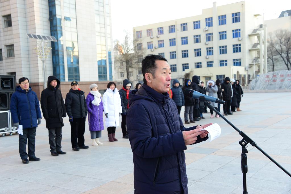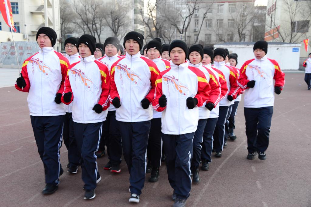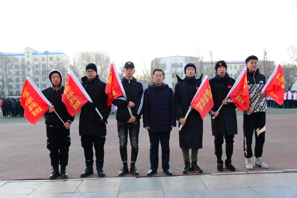 首先,举行了庄严的升国旗仪式。接着进行了91个班级的早军操汇报表演,同学们在零下17摄氏度的校园,战严寒斗风霜,昂首阔步,整齐的步伐声、响亮的口号声此起此起彼伏,让冬日的校园充满了勃勃生机。此次大会共有32个班级被评为“军操标兵班”。