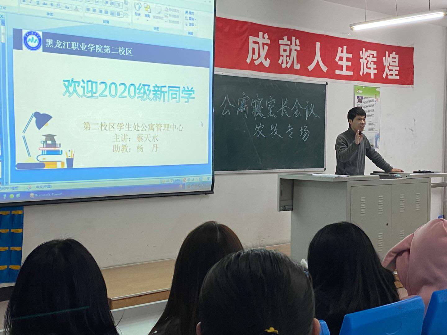 10月23日,召开了2020级新生寝室长会议,会议重点强调了内务卫生、防疫抗疫和文明守纪三个内容,并签订了《遵守公寓安全管理秩序承诺书》,此次会议是推进学生公寓“防疫抗疫”工作的重要举措。