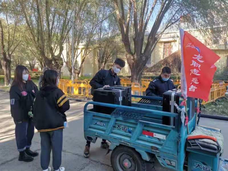 这次“暖心行动”需要多部电动三轮车做为运送学生行李的工具。保卫处和后勤服务中心主动请缨,发动本部门职工义务为志愿活动无偿提供电动三轮车五部,完全满足了服务学生的需要。农牧工程学院和食品药品学院志愿者分别负责一号学生公寓楼和四号公寓楼学生行李搬运工作。因楼层较高,行李较重,一趟下来志愿者身上就大汗淋漓,秋风一吹直打冷颤,但志愿者心中有团火,稍做休整就又投入到下一趟搬运。在核酸检测现场,信息工程学院动漫1901班刘泊豪,动漫1902班李博、郭品贝、袁一伦等四名学生正在帮医护人员搬运检测设备。医护人员向他们表达了谢意,几位同学说:“我们返校时,老师不辞辛苦帮我们搬运行李,让我们体会到了回家的感觉。老师的行动也感染了我们,帮你们做点力所能及的事情也是应该,不用客气。”