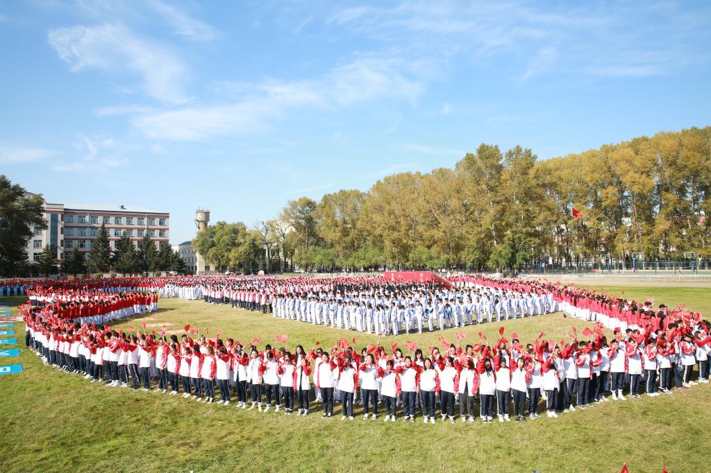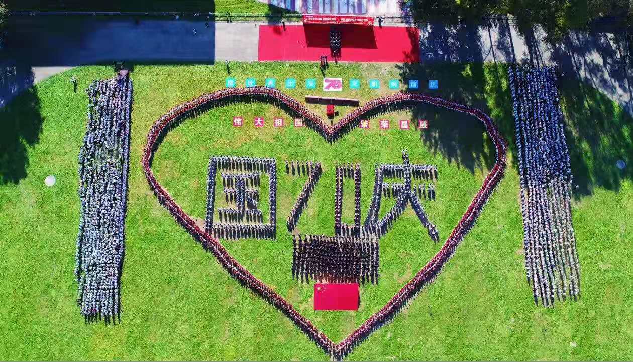 全体教职工站在“心”字造型的底部,国旗背景墙的前面,表达了学校“把学生放在心中最高位置”的理念,也体现了“当好学生铺路石”核心价值观,更展现了新时代人民教师忠诚党的教育事业,热爱党、热爱祖国的高尚情怀和真挚情感。