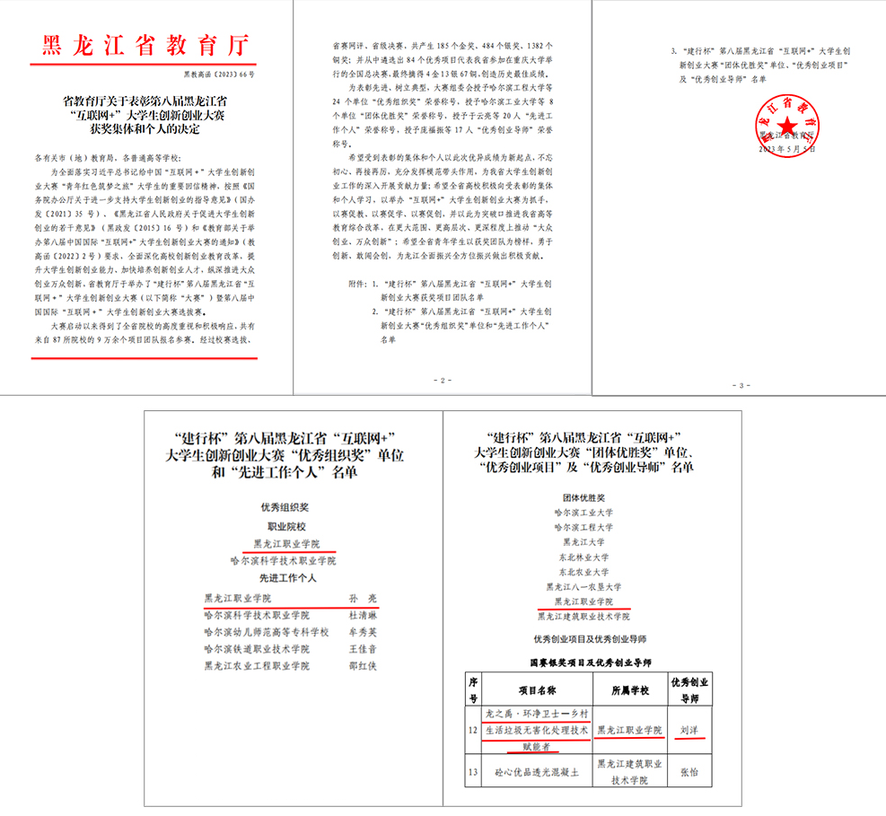 近日,学校收到省教育厅印发的《关于表彰第八届黑龙江省“互联网+”大学生创新创业大赛获奖集体和个人的决定》(黑教高函[2023]66号)。