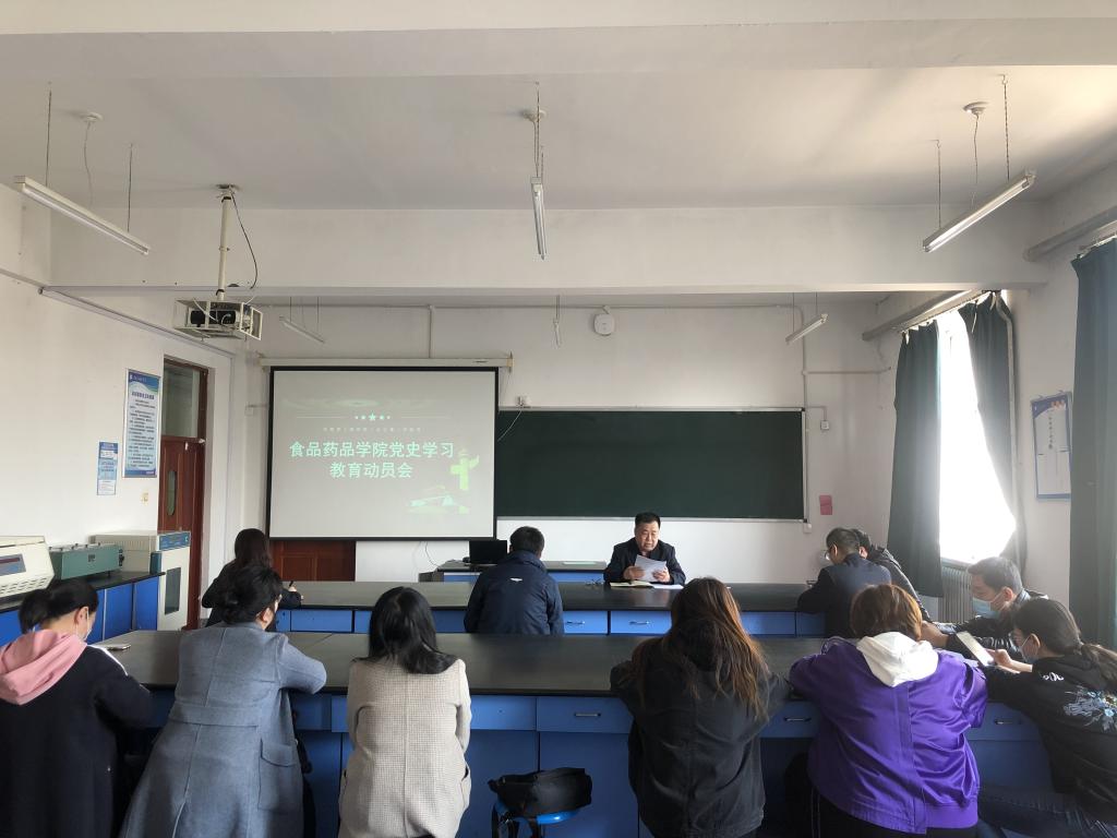 4月9日,为深入学习贯彻落实习近平总书记关于学习党史的重要讲话和指示精神,持续深化爱国、爱党教育,按照黑龙江省委教育工委和学校党委的工作要求,食品药品学院党总支组织全体师生党员,开展党史学习教育动员会。会议由食品药品学院党总支书记史兴山主持。