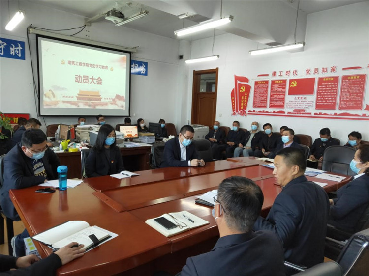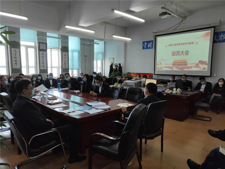 3月31日,建筑工程学院召开党史学习教育动员大会。会议传达并学习了《中共永利集团88304官网(黑龙江省经济管理干部学院)委员会关于印发学校党史学习教育实施方案的通知》。