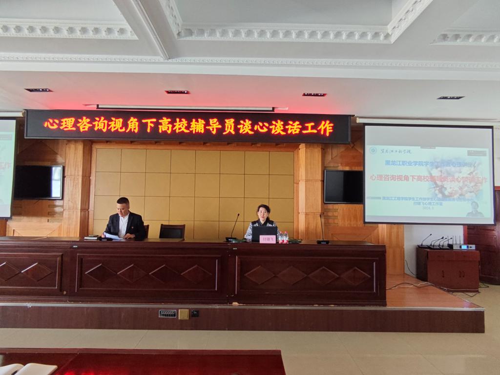 为了进一步提升辅导员谈心谈话工作技能,提高了解学生内心的能力,及时发现心理问题、应对心理危机,学校于5月29日邀请黑龙江工程学院学生工作部学生心理健康教育与咨询中心主任付翃飞教授,举办题为《心理咨询视角下高校辅导员谈心谈话工作》的讲座。讲座由学生工作部副部长吴弢主持,各二级学院副书记、学管办主任、全体专兼职辅导员及公寓辅导员、心理健康教育咨询中心教师以及兼职心理咨询师聆听了讲座。