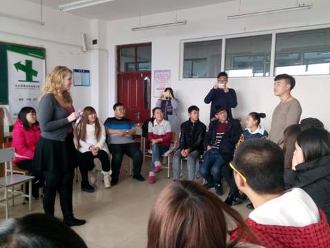 这次讲座由来自华盛顿的Michael女士主讲。为让学生与外教充分交流,口语讲座采取20人左右小班额的形式。Michael老师一上场就具有很大的感染力,充分调动起了同学们的热情。她从日常常用的英语口语作为切入点,学生们学习到了原汁原味的英语表达方式。同时,学生们还亲身体会到英语国家的文化特点。讲座现场气氛热烈,师生们笑语不断。