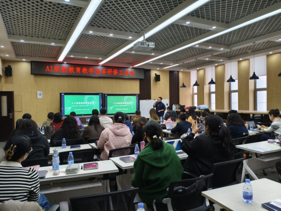 为深入贯彻落实国家教育数字化战略行动,加快推进新一代信息技术与教育教学深度融合,赋能教师探索智能化教育创新路径,2025年3月26日,学校在工匠楼205教师发展中心教师培训室组织了一场主题为“”AI赋能教育教学改革“的研修工作坊,旨在帮助教师们更好地理解和运用人工智能技术,提升教学质量和效率。此次培训邀请刘双绪(智慧树教育平台资深讲师)老师作为培训师,吸引了全校40余名教师参加。