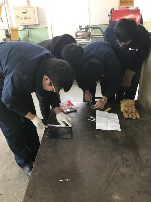 学生研讨制定金属切割方案学生根据图纸实施切割方案