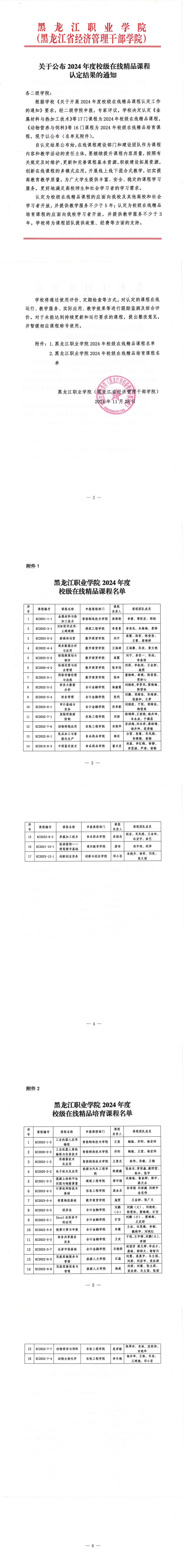 关于公布2024年度校级在线精品课程认定结果的通知