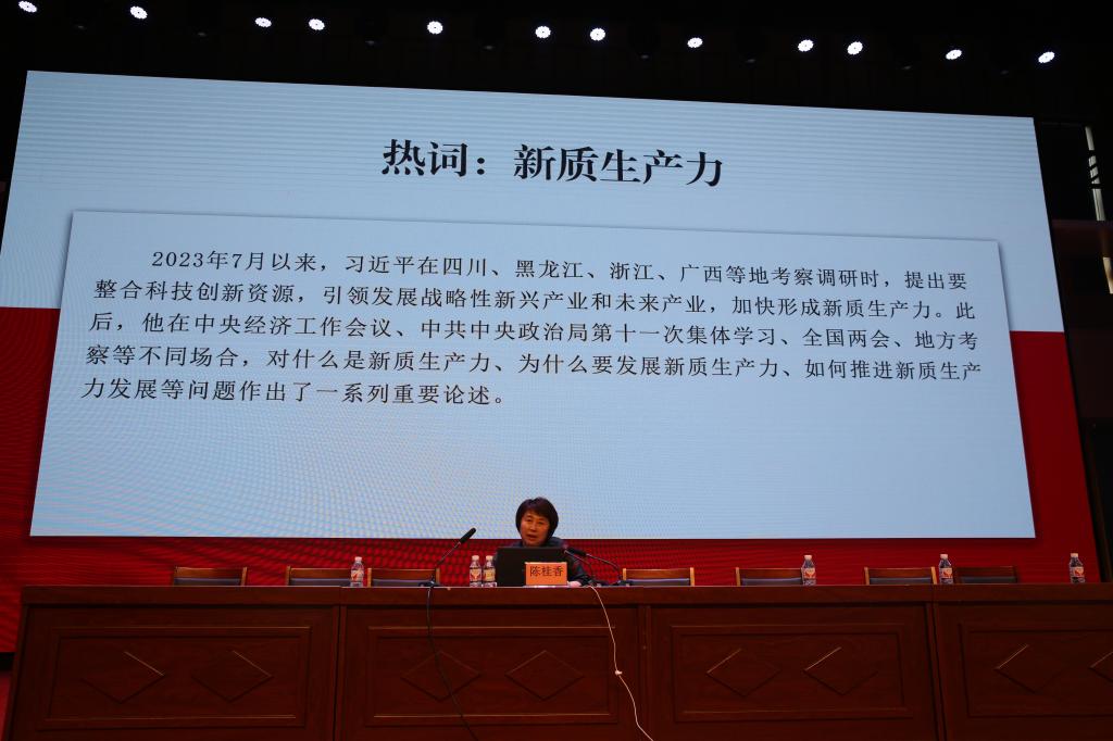 开班式后,培训班进行了第一讲,由永利集团88304官网马克思主义学院院长陈桂香教授为学员作题为《新质生产力的科学内涵和发展路径》的报告。