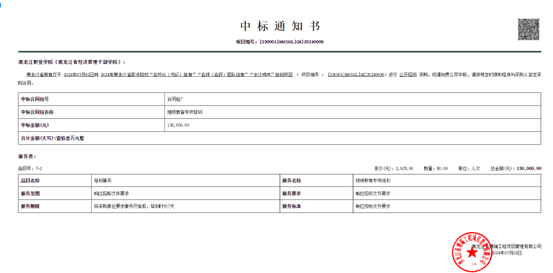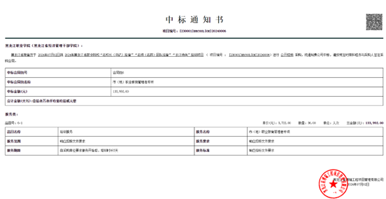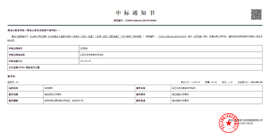 2024年7月2日,永利官网参加2024年黑龙江省职业院校“名校长(书记)培育”“名师(名匠)团队培育”“龙江特色”4个培训项目,在激烈的竞争中脱颖而出,投了4个标段项目,全部中标,中标金额共计52.63万元。