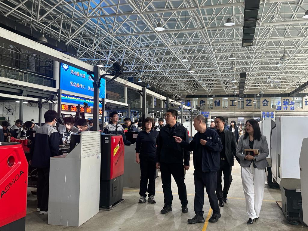 5月16日,沈阳飞机工业(集团)有限公司培训中心技能培训室主任张大为一行3人莅临永利官网调研数字工匠学院建设情况,继续教育学院党总支书记赵彦生、院长王英侠、副院长刘广亮参加了调研,参观了学校实训场所:工业实训中心、多轴加工实训室、数字化检测实训室、工业机器人训练中心、虚拟仿真实训室等。
