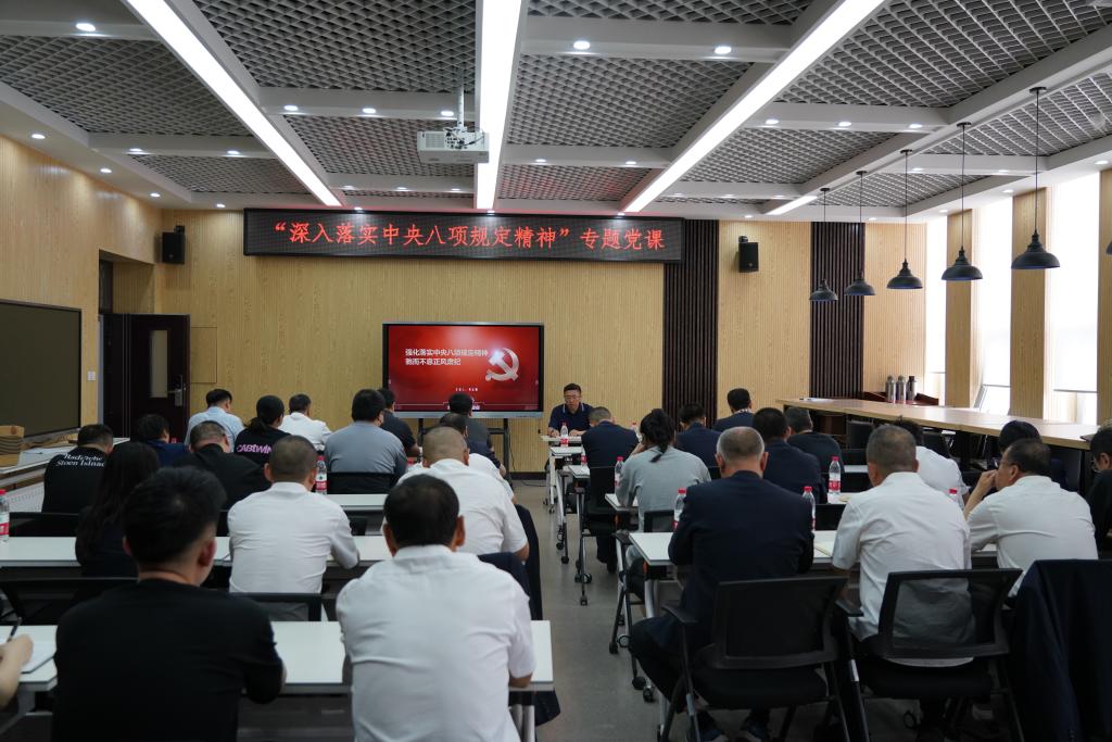 党课上,何志鹏阐述了中央八项规定出台的背景和主要内容,结合违反中央八项规定精神典型案例,对违规公款吃喝、公款旅游、违规收受礼品礼金、形式主义和官僚主义等11种典型表现进行深入剖析,并对隐形变异作风问题予以提醒。
