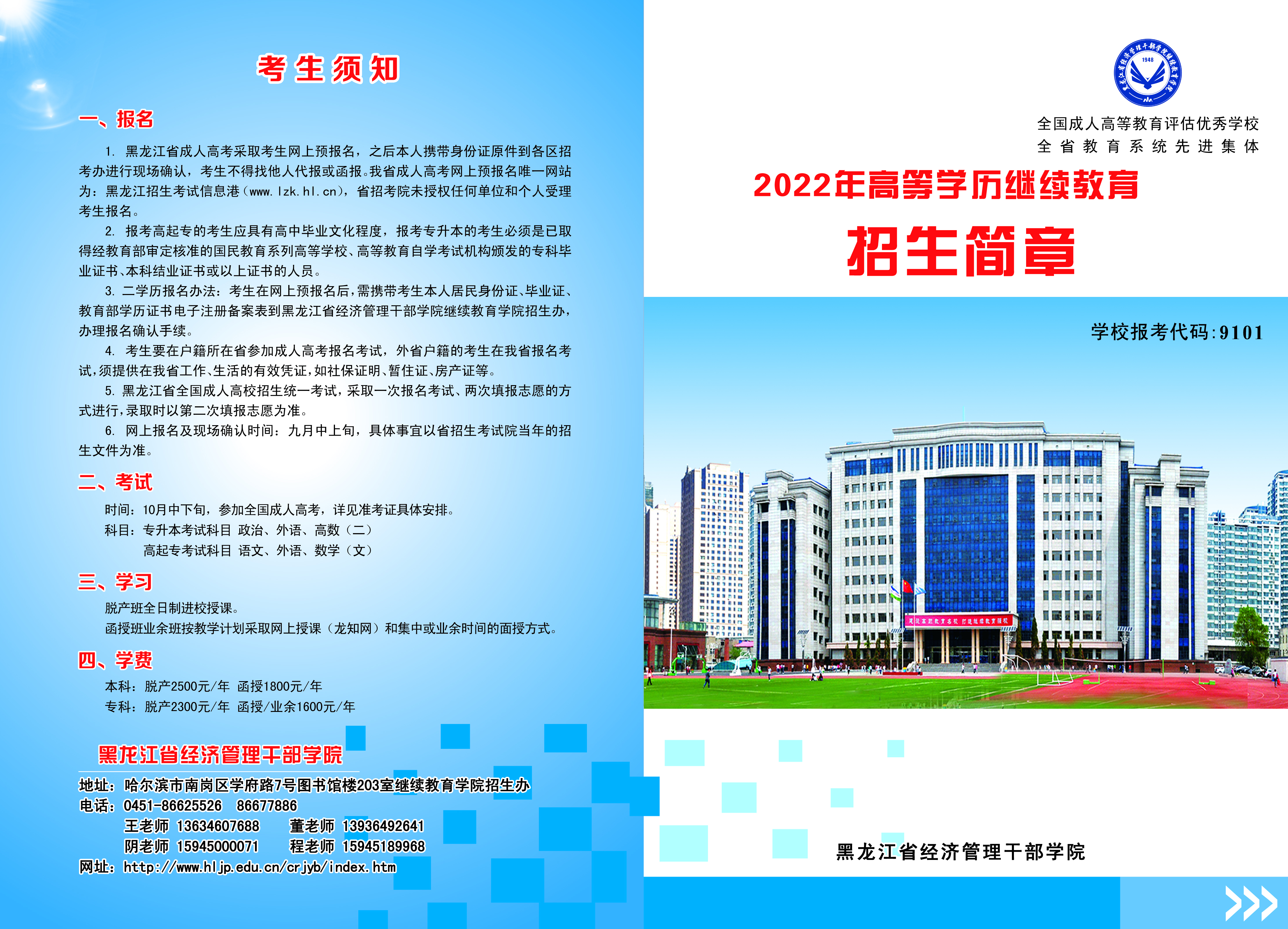 黑龙江省经济管理干部学院2022年高等学历继续教育招生简章