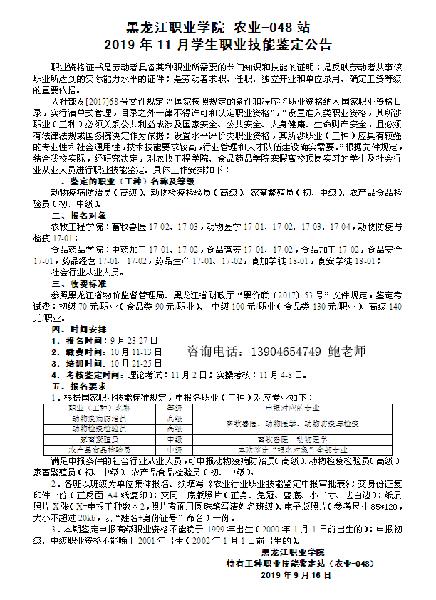 永利集团88304官网农业-048站2019年11月学生职业技能鉴定公告
