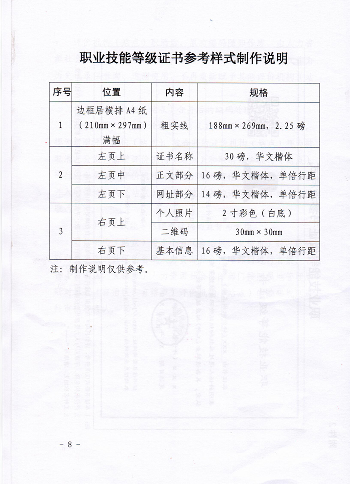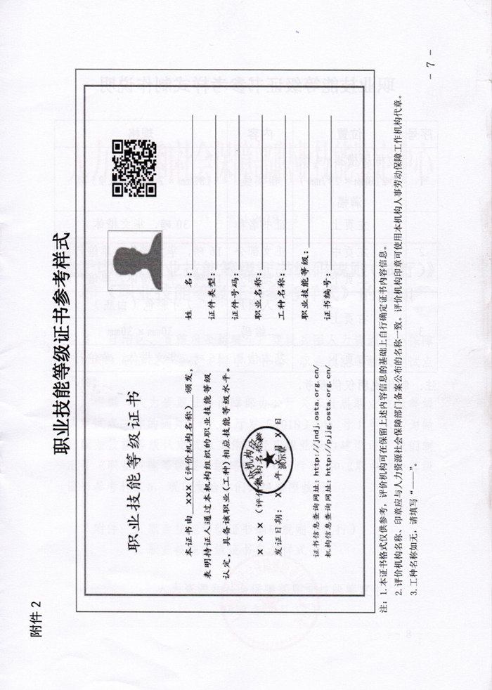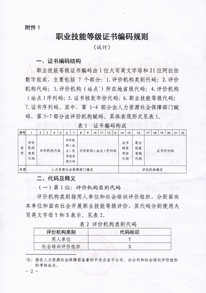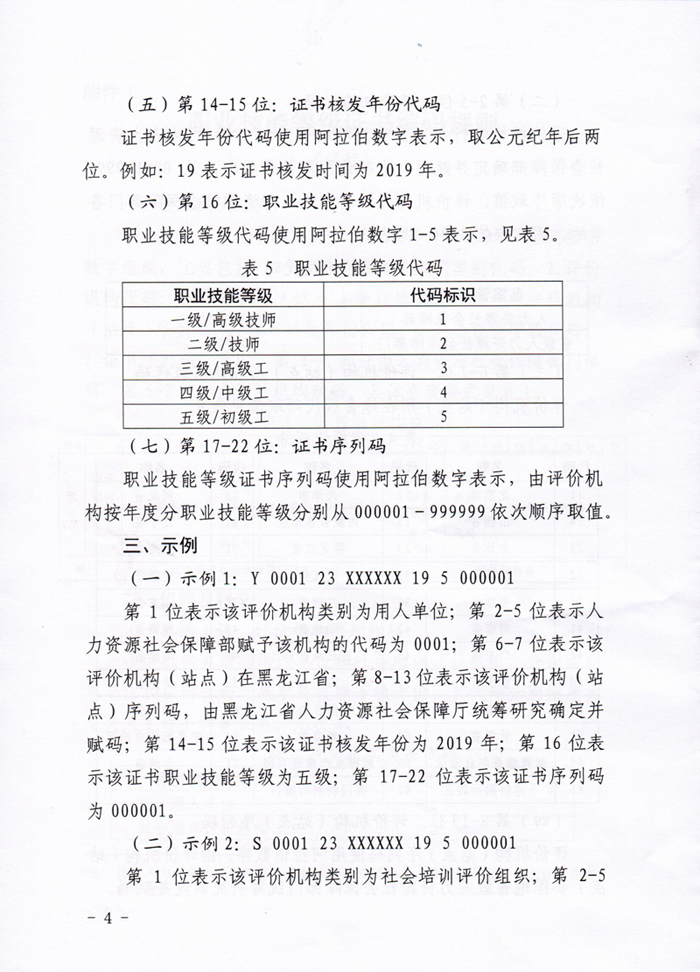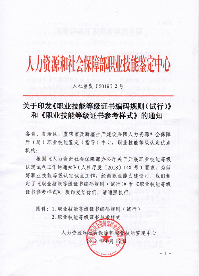 人社部关于印发《职业技能等级证书编码规则(试行)》和《职业技能等级证书参考样式》的通知