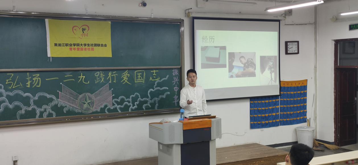 接下来,来自哈尔滨师范大学教师教育学院学科数学专业研究生罗全越同学,分享了自己本科阶段当兵入伍,退伍后继续完成学业的经历。他自己刻苦努力、积极上进、严于律己,在国家给予退伍兵的优惠政策支持下考上了研究生,他与同学们共勉,要心怀国家,要热爱学习,用自己的实际行动践行爱国主义理想。
