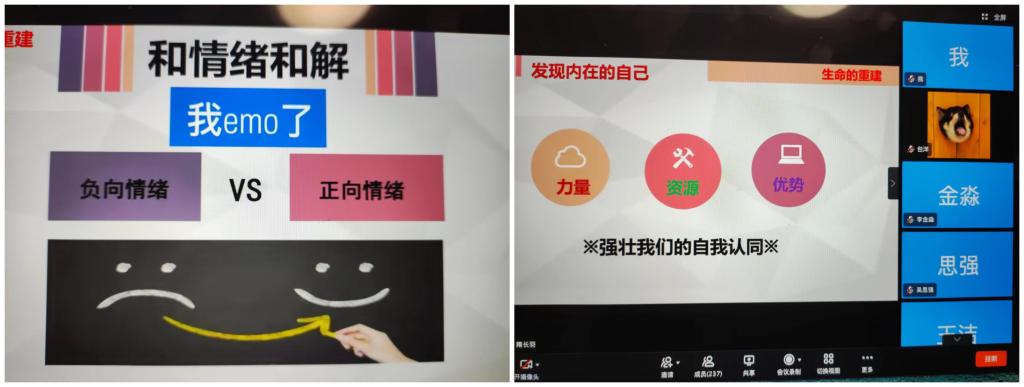 隋老师说到在日常的生活中我们难免会经历“习得性无助”,被负面情绪所影响,轻则垂头丧气,重则抑郁成疾,这个时候则需要理性看待负面情绪的作用,调整自己的心态,感受自己的真实情绪,达到“负向情绪”和“正向情绪”的情绪和解。在情绪的和解中,逐渐认清自我,强化自我认同,铸造强大的精神力量。讲座尾声,隋老师为毕业生送去了寄语“山与山不会相见,人与人终会重逢,希望同学们越来越好”,讲座在《且行且珍惜》这首歌声中落下帷幕。
