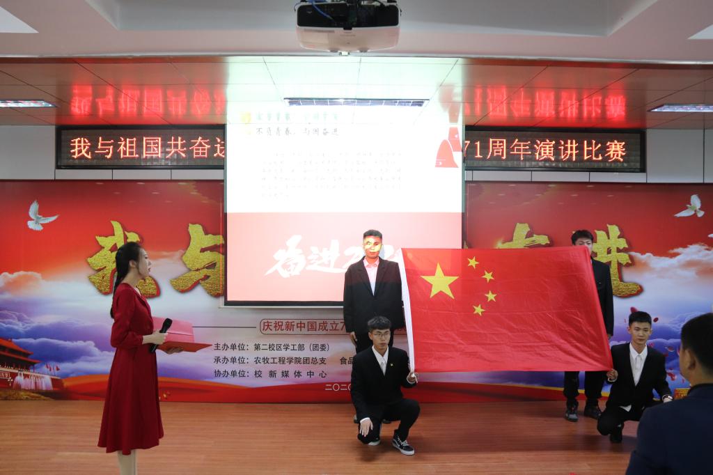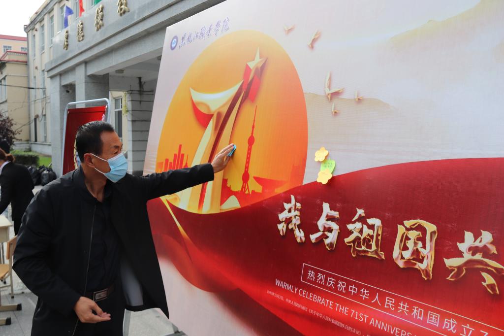 系列活动主要包括“我与祖国共奋进”——庆祝新中国成立71周年演讲比赛、“走进公寓——双节暖人心”慰问住校同学、“青春告白祖国”心愿打卡、“我和我的祖国”爱国题材电影观赏和“红歌嘹亮”大学生校园文艺展演五项具体内容。学校党委委员、组织部部长钟敏强与全体学工干部共同参加了部分活动。在演讲比赛活动中,通过选手们歌颂新中国成立71年来取得的伟大成就和如今的美好生活,传递了同学们“我与祖国共奋进”的青春担当;看望慰问活动,在同学们的欢笑和感谢声中,感受到同学们对学校领导的时刻关怀和关心的感动;在心愿打卡活动中,同学们把对祖国发自心底的祝福与立志成才的话语,用一张张卡片,不断放大;电影观赏和文艺展演活动,同学们在浓浓的节日氛围中,感受了祖国的强大,舒缓了准封闭管理校园生活带来的紧张情绪。