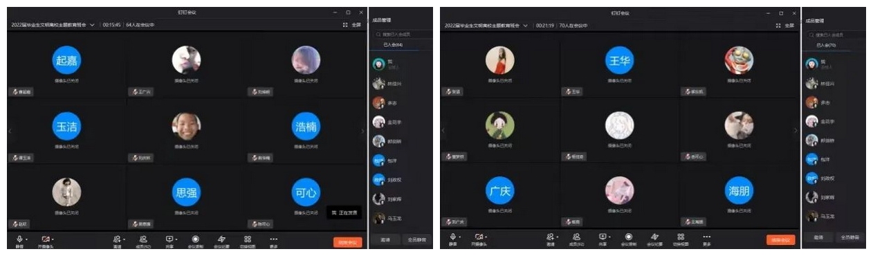 一、理想信念主题教育。线上班会辅导员引导毕业生能够将个人理想和祖国发展、社会需求紧密结合,提高站位,作为一名新时代大学毕业生,要明确历史使命与责任担当,清晰定位自己是实现中华民族伟大复兴的先锋力量。中华民族伟大复兴需要青年人才的努力奉献。广大毕业生要树立同心同向的理想信念,勇于担当起时代赋予的历史责任,励志勤学、刻苦磨炼,在激情奋斗中绽放青春光芒、贡献青春力量。