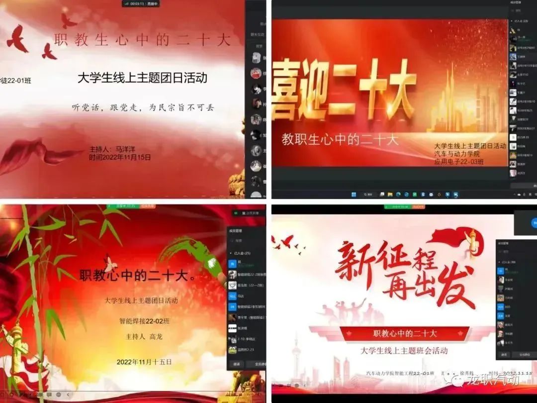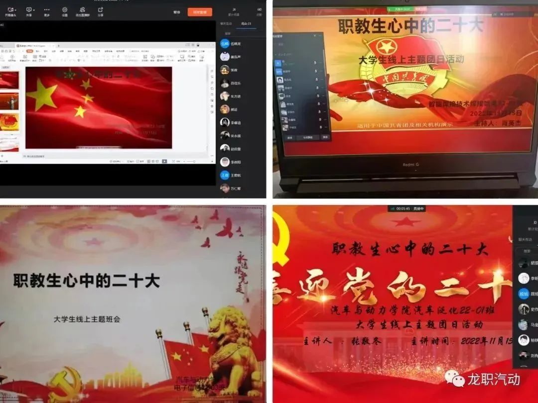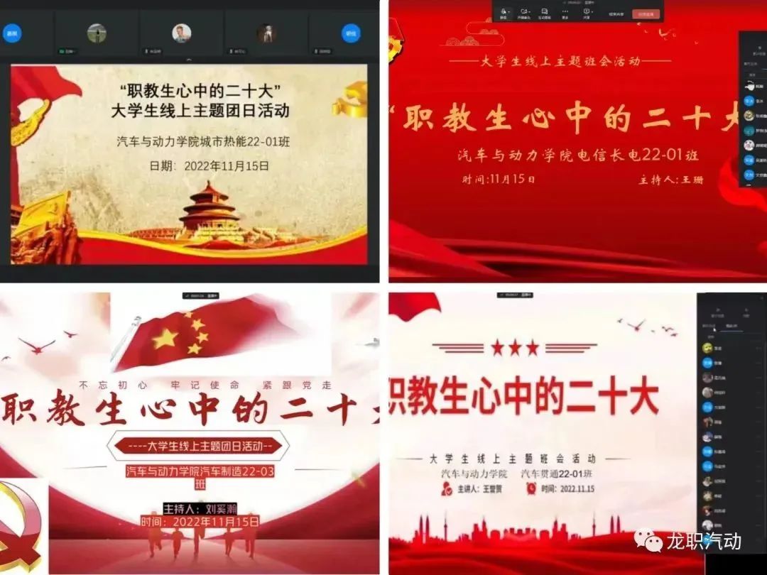 20221115日晚上18:00整,汽车与动力学院组织2022级全体团支部在班级内开展了“职教生心中党的二十大”线上主题团日活动,活动以线上钉钉会议的形式进行。