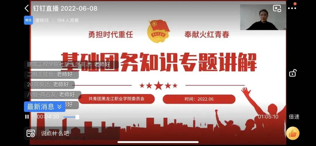 为期七天的培训,全体学员通过参加“讲座、讨论、结业考试及心得分享”等课程,系统接受了团学干部素质培训,圆满完成了本期培训班规定的各项学习培训任务。期间,全体学员观看了《战役砥砺青春——永利集团88304官网团委2021年图文影音大事记》,聆听了校团委书记邹春雷作的题为《喜迎党的二十大 永远跟党走 奋进新征程》的开班式致辞,二校区团委负责人梁立作的题为《学生组织工作人员应具备的素质与能力》的开班第一讲,校团委组宣办主任唐晓恬作的题为《“智慧团建”系统平台的操作使用及问题解答》的开班第二讲,学工部活动课程管理科负责人徐春燕作的题为《活动课程“四季四节、三赛三动”》的开班第三讲,学工部大学生心理健康教育与咨询中心负责人隋长羽作的题为《学生干部心理解压与自我调适》的开班第四讲,二校区学工部常通作的题为《用语言打开自己,用沟通拓展交际》的开班第五讲。