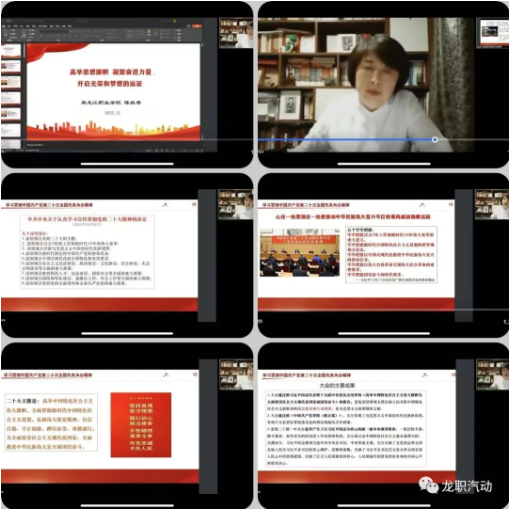 12月7日,为进一步深入学习贯彻党的二十大精神,按照学校党委统一部署,汽车与动力学院党总支通过腾讯会议,举行了学习贯彻党的二十大精神报告会。马克思主义学院院长陈桂香教授到会,并做了主题为“高举思想旗帜 凝聚奋进力量 开启光荣和梦想的远征”报告。汽车与动力学院党总支书记田浩鹏、院长宫波、党总支副书记刘铁铸、副院长张春东,带领分院全体教师、学生党员、入党积极分子、学生干部参加了此次报告会。