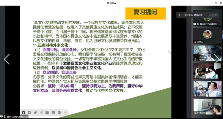 习近平总书记在中国人民大学考察调研时指出:“鼓励各地高校积极开展与中小学思政课共建,共同推动大中小学思政课一体化建设。”为真正找到“青少年”和“青年”学生思政课的着力点,顺利衔接课程内容,精准完善课程体系,马院扎实推进大中小学思政课一体化建设工作。在前期深入调研的基础上,12月6日,孔令声老师带领政治教研室全体教师线上观摩了哈尔滨师大附中李晓丽老师的政治课。