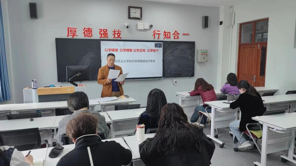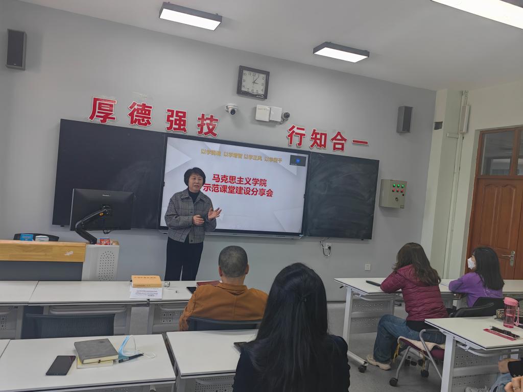 为了进一步学习贯彻习近平新时代中国特色社会主义思想主题教育,将主题教育活动做细做实,5月5日下午,马克思主义学院召开示范课堂建设分享会,教师孟雷和王丽分别从思政课教学创新团队建设、示范课堂建设两个角度将外出学习收获作了精彩分享。马克思主义学院领导班子成员及全体教师参加了会议。