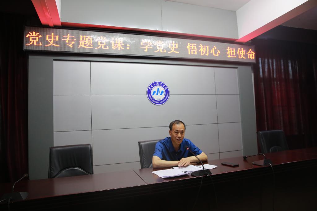 6月23日,按照学校《党史学习教育实施方案》安排部署,学校党委委员、组织部部长钟敏强为第二校区三个二级学院师生党员作题为《学党史 悟初心 担使命》专题党课,农牧工程学院、食品药品学院、信息工程学院近百名师生党员代表参加学习。