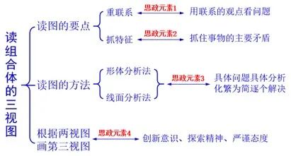 由根据不同视图的特点选用不同的读图方法拓展到在日常学习和生活中,要采用具体问题具体分析的思维方式,根据问题的不同特点,采取恰当的分析方法解决问题。当需要解决复杂问题时,可以化繁为简,逐个解决。一些事物不能光看表面,要深入剖析内部,才能对事物本身有深刻的认识。