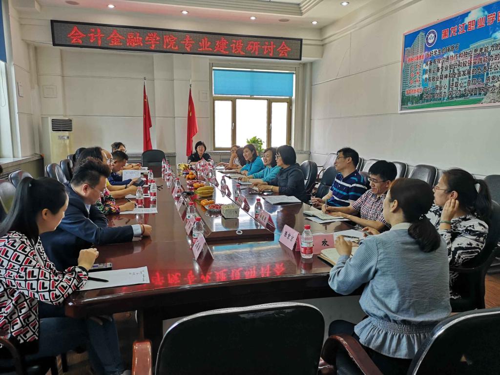 2019年6月11日下午,我院在清华楼900会议室召开了2019年度专业建设研讨会。企业参会人员有省资产评估协会会长常虹、哈尔滨志诚会计代理记账有限公司总经理亓翠兰、万联证券哈尔滨营业部总经理罗鑫等8位专家。我院参会人员有鞠永红院长、张雨薇书记、张振和副院长、石倩副院长及各教研室主任。