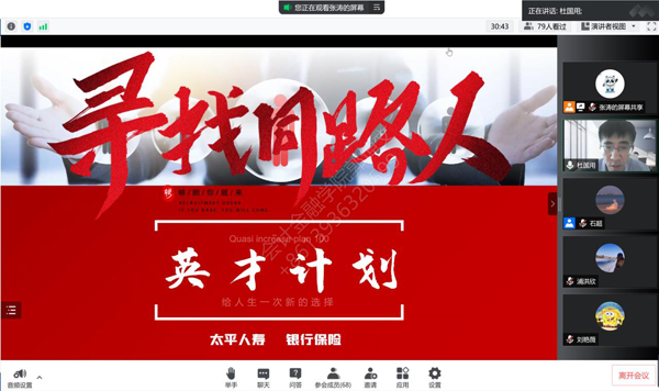 5月30日,我院金融服务与管理专业组织开展了企业宣讲活动。此次活动邀请了太平人寿保险有限公司黑龙江分公司进行了宣讲。学院副院长杜国用、专业负责人、2020级金融服务与管理专业全体师生参加了此次线上宣讲活动。