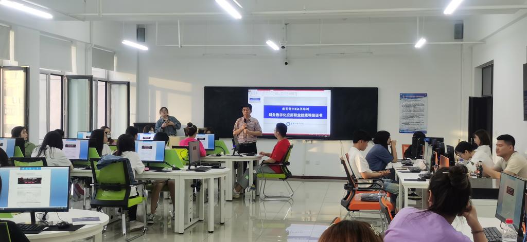 按照1+x职业技能等级证书的试点工作要求,我院组织了2019级会计专业40名学生财务数字化应用职业技能等级证书的考前培训工作。但在培训过程中,学生出现了理论知识不足、实践操作不清的问题。为保证考前培训的效果,助力学生考取职业技能等级证书,会计与基础联合党支部全体党员与参加培训的学生按班级结对子,总结出设置委托关系、配置作业组工作、用户分配权限、新增组织级供应商、债务债权转移、维护视同销售事项等六类实操问题,并进入培训现场,与学生面对面进行讲解,夯实理论知识,手把手指导,强化业务操作训练。整个活动历时两个多小时,参加培训学生给与了大力赞扬。