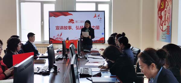 强党性,弘扬榜样力量。支部纪检委员于涵同志讲述了抗联英雄李兆麟事迹,李桐同志分享了传承“大庆精神”的“党的二十大”代表大庆石油工人刘丽事迹,于悦同志宣讲了发扬“北大荒精神”的“党的二十大”代表北大荒农垦集团王守聪事迹。以小切口讲述大道理,以小故事印证大发展,引导党支部全体党员在红色教育中强党性,不断汲取奋进向上新力量。